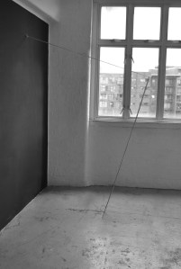 “Fuck you anyway”,2014,Installation,variable dimension,paint on wall,glass,cord