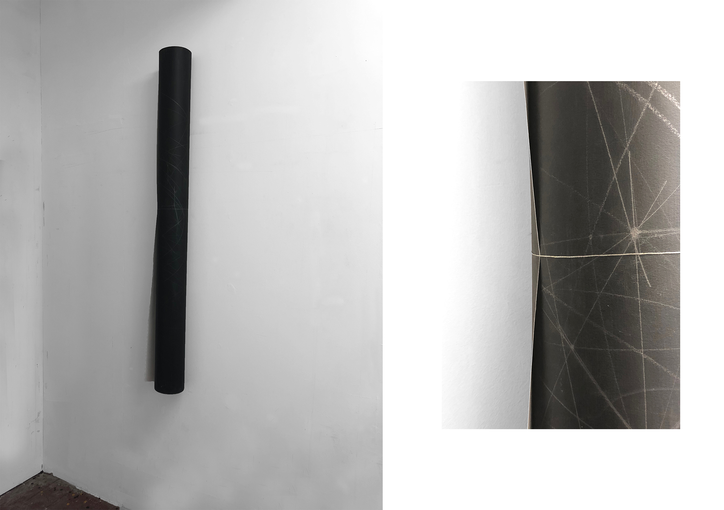 Suspended_Installation,acrylic,pencil on canvas,silver string,cm160x12x12